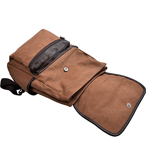 -. Brand : DouGuYan -. ClothingSize : Medium -. Department : Unisex -. Feature : Approx Dimensions : 12.9" L x 5.1"W x 17.7" H . Fits 15 inch laptop , several clothes , books , camera , powerbank , cellphone etc... / Total of 8 pockets : 1 main compartment with zipper and magnet snap flap . Inside has 2 open pouchs , 1 padded sleeve with velcro strap for 15 inch laptop . Outside has 2 side pockets holded your water bottle , 2 front zipper pockets features a classic shape with several pockets for storage and organization. / Padded straps : the black backpack has padded shoulder straps which are sturdy and adjustable , protect your shoulder , Just notice the Brown One has no padded straps . / Material : 80% 20 OZ water-washed process canvas , 20% man made leather . The canvas is made of natural cotton , Eco-friendly and highly rip resist. / Water washed process canvas , it looks more vintage and hardly to lose color . Smooth metal zippers and magnet snap flap to lock the main pocket .Ultra-durable , Ultra-awesome . This Backpack is really perfect for school ,work ,library , cafe , travel -. ProductGroup : Apparel -. ProductTypeName : LAGE -. Size : Medium -. Title : Douguyan 15" Inch Laptop Bag Canvas Leather Backpack Vintage Bookbags School Backpack 209