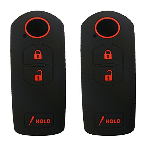 2Pcs Coolbestda Silicone Smart Key Fob Cover Case Remote Skin Keyless Jacket Holder Protector for MAZDA 3 CX-5 CX-7 CX-9 WAZSKE13D01 3 Buttons Black