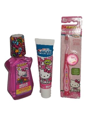 -. Title : Children's Dental Care Bundle: Hello Kitty Mouthwash Hello Kitty Crest Bubblegum Flavored Toothpaste and Hello Kitty Firefly Toothbrush with Free Hello Kitty Tote