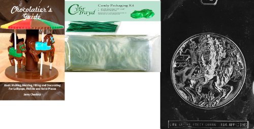 Cybrtrayd Santa with Reindeer Chocolate Mold with Chocolatier's Bundle of 25 Cello Bags, 25 Green Twist Ties and Chocolatier's Guide