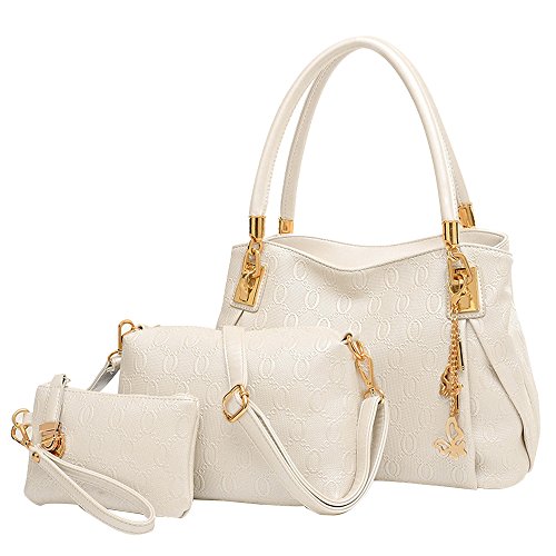 -. Feature : Material: High quality Soft PU Leather with Luxury type,no smell,comfortable strap to wear / Multi outside and inner pockets & extra removable shoulder strap,hand clutch purse and shoulder bag / 3 years warranty for handbag,shoulder bag and purse with plenty of inside pockets to put mobile,ipad ,cosmetics,book,etc / 3Pcs Set multifunctional handbag: 1 handbag, 1 shoulder bag, 1 purse with keychain . / Soft Pu leather material,lightweight,easy and fast to clean stain,big and roomy, not bulky
