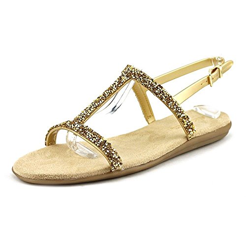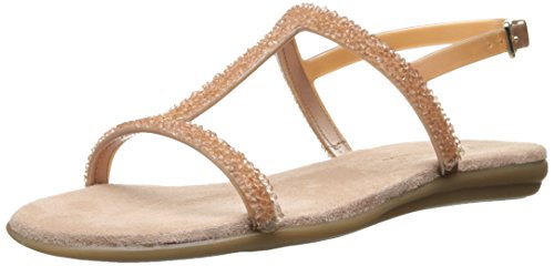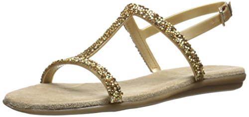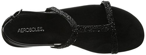 Enhance your individual style with the Aerosoles Good Chlue sandal. This women's flat sandal has a supple faux leather upper encrusted in glittering faux stones. The grippy rubber sole encourages all-day wear.