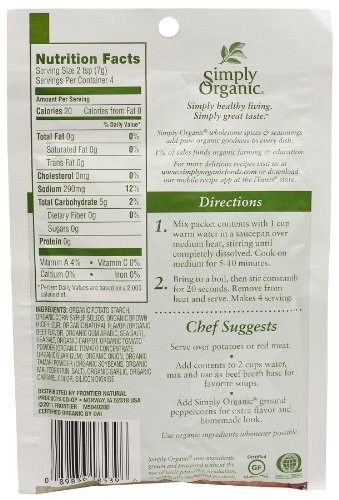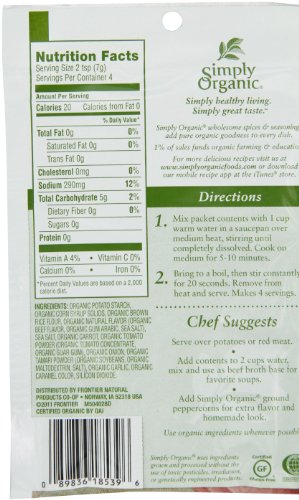 Simply Organic Brown Gravy, Seasoning Mix, Certified Organic, 1-Ounce Packets (Pack of 12)