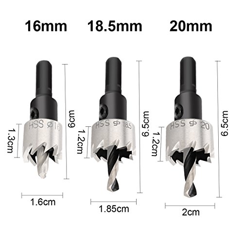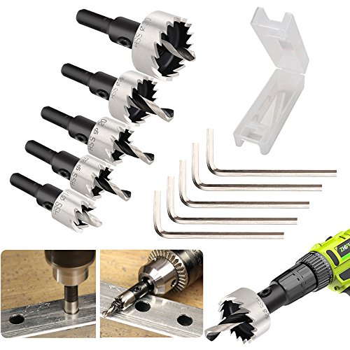 HSS Drill Bit Hole Saw Set(with 5pcs) form AISHN, Carbide Tip hole size 16mm 18.5mm 20mm 25mm 30mm Apply to Aluminum alloy, Stainless steel etc