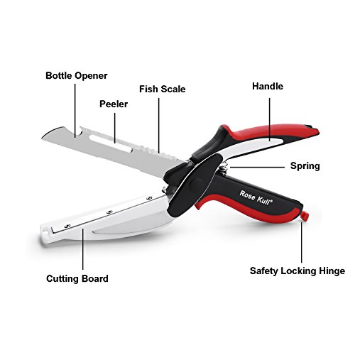 Rose Kuli Smart Food Cutter with Cutting Board -Stainless Steel Kitchen Scissors Slicer for Vegetables Fruits Chopper