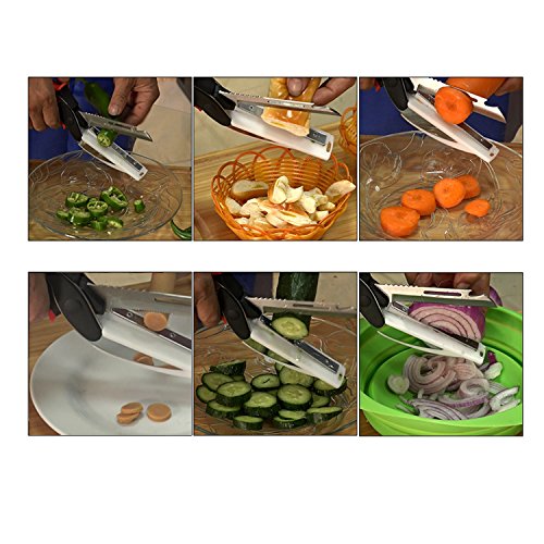 - Multifunctionality: 6 in 1 multi-function clever kitchen utensil cutter with a built-in cutting board can chop, slice, dice, peel, crave and open bottles.Save your space,money and time in the kitchen.