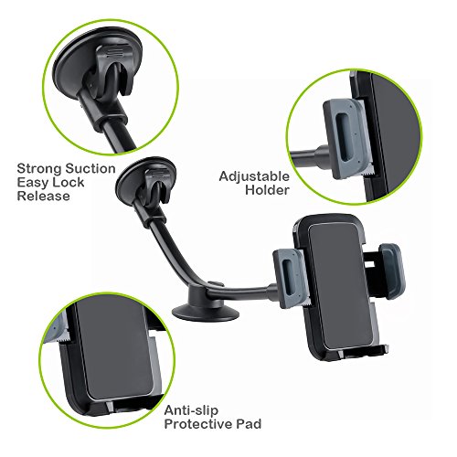 Universal Car Phone Mount Holder, Windshield Long Arm Cell Phone Holder for iPhone 7/6S/6 Plus/5S/5, Samsung Galaxy S6 S5, Nexus 5X/6P, LG, HTC and Other Smartphones