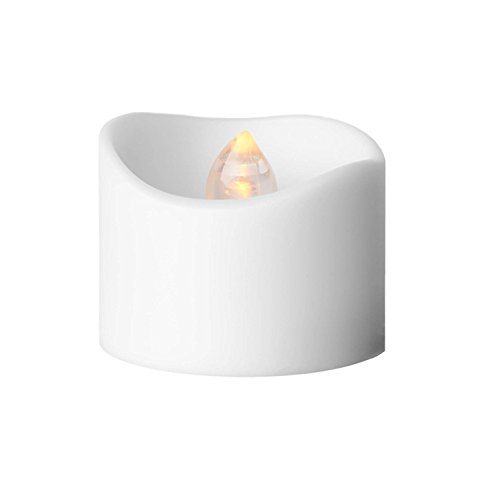 Battery-powered (battery included & installed) amber color LED tea light candles provide realistic flickering effect, ideal for accent decorations for holiday celebrations, wedding ceremonies, special occasions such as birthdays and anniversaries, memorial services, church gatherings, DIY projects and etc. Wind-proof for both indoors and outdoors use, at homes, restaurants, churches, schools, backyards, sports venues and etc.