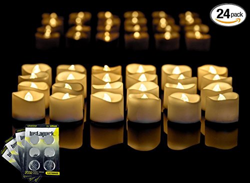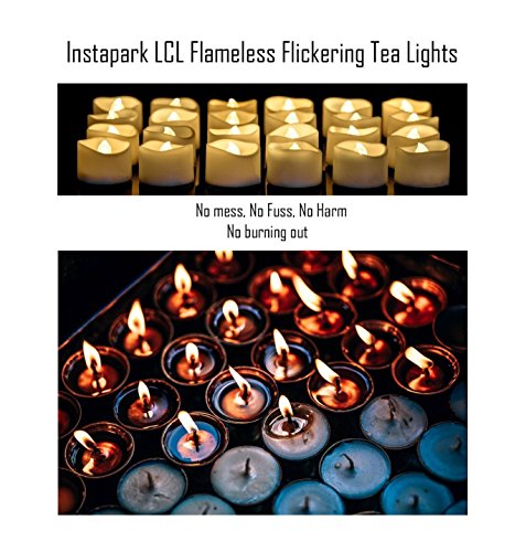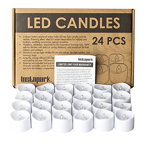 Instapark 24 LED Faux Flameless Flickering Tea Light Candles, 2-Dozen per Pack Pet-safe and Child-safe Wind-proof Indoor & Outdoor (2-dozen Bonus Replacement Batteries Included)