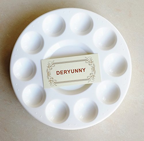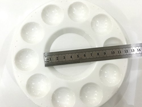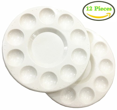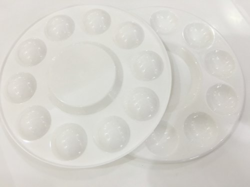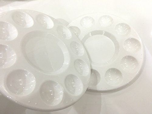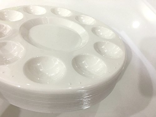 Round Artist Craft Palettes Paint Tray Plastic Palettes Watercolor Oil Painting Tray, 10 Wells, 17 cm, White, 12 Pack