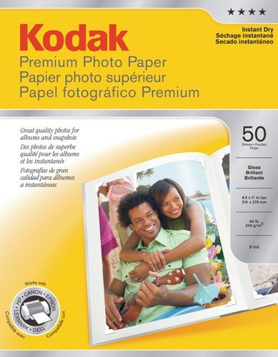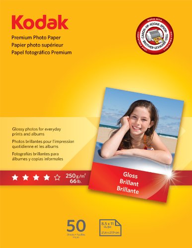 Kodak Glossy Premium Photo Paper, 8.5 x 11 Inches, 50 Sheets per Pack (8360513)