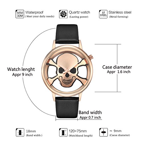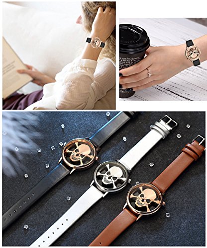 Womens Cool Skull Analog Watches Luxury Skeleton PU Leather Wrist Watch Waterproof