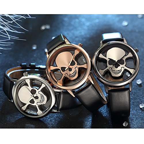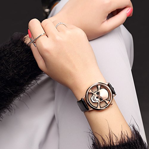 ❤COOL SKULL WATCH: Simple see-through case window with non numeral around rim and rose gold sword marker. Unique design of the skeleton watches will be your best bet.