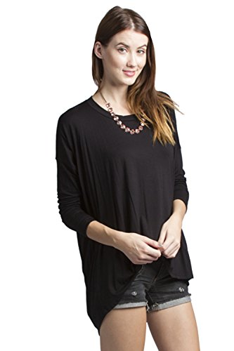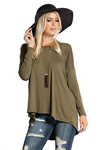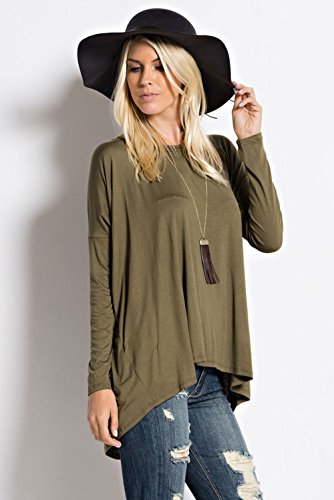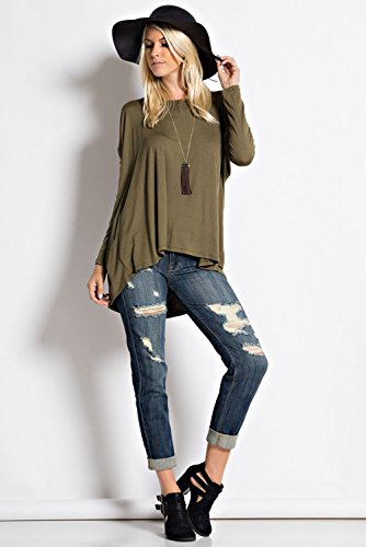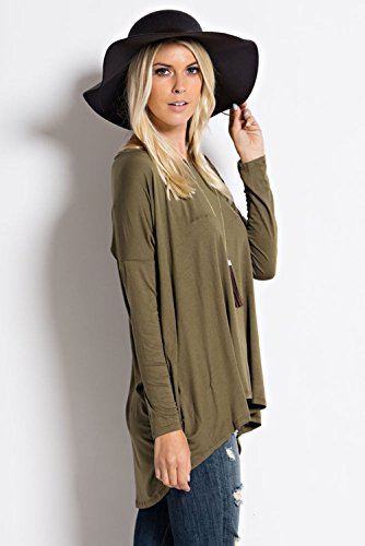 Ladies Long Sleeves Flare Hem Loose Fit Tunic Top