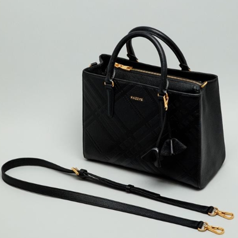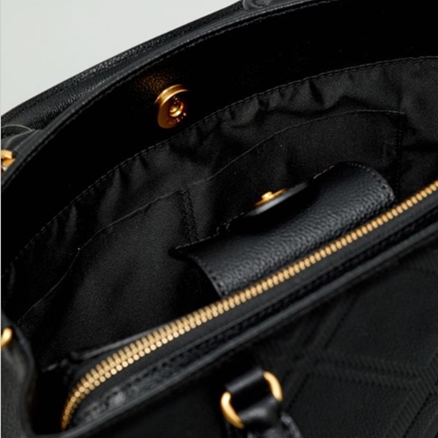 모던한 디자인으로 사선체크 패턴과 플라워 참장식으로 포인트를 준 감각적인 토트백 겸용 크로스백 입니다.