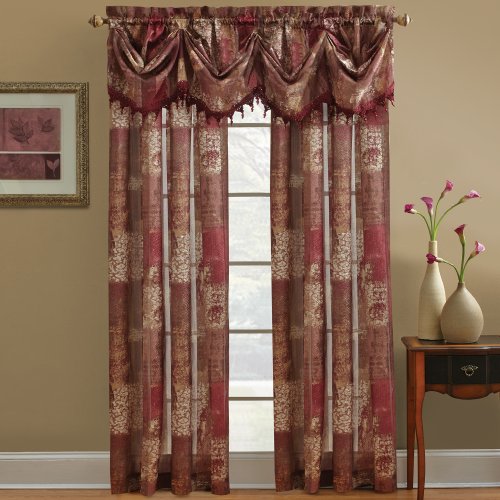 The Madagascar Window Collection uses colorful designs to create a vibrant addition to any room. The sheer jacquard panels feature exquisite patterns with chocolate, spice or burgundy tones with a snakeskin overlay. The federal valance features a jeweled tassel fringed trim.Feature
