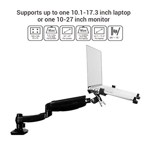 2-in-1 Monitor Arm Laptop Mount Stand Swivel Gas Spring LCD arm Desk mounts for 10''-24'' Samsung/Dell/Asus/Acer/HP/AOC Computer Screen Monitor/ 11-15.6 inch Notebook