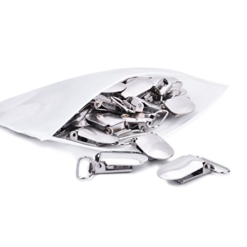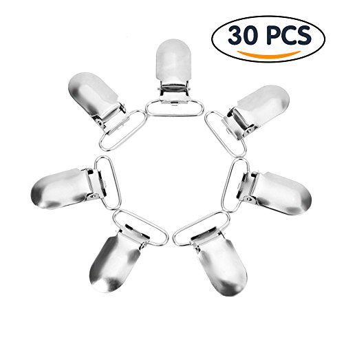 Tenn Well Pacifier Suspender Clips, 30pcs 1inch Stainless Steel Suspender Clips for Bibs and Toys with Nubs (Silver)