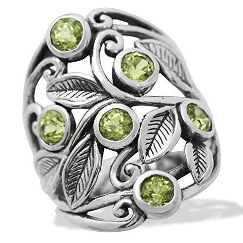 -. Title : 1.8ct. Natural Peridot 925 Sterling Silver Filigree Leaf Ring
