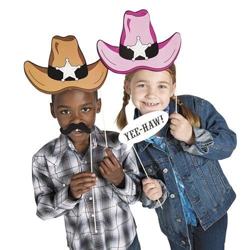 -. Feature : Each 7" - 13" accessory is on a 12" wooden stick / Assortment lncludes wanted sign, cowgirl and cowboy hat, sheriff badges, lips, mustache, lasso, howdy and yee-haw signs