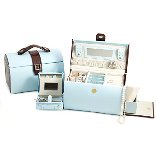 Time Factory AJ-BB557BLU Blue & Brown "Croco" Leather Jewelry Box, Blue/Brown