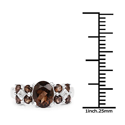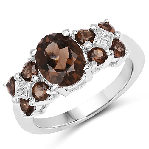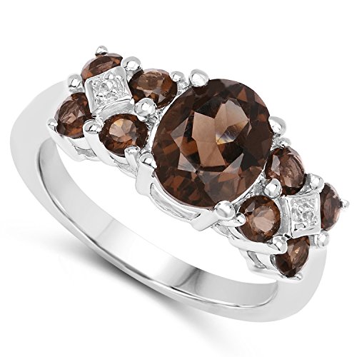 -. Title : 2.63 Carat Genuine Smoky Quartz & White Topaz .925 Sterling Silver Ring