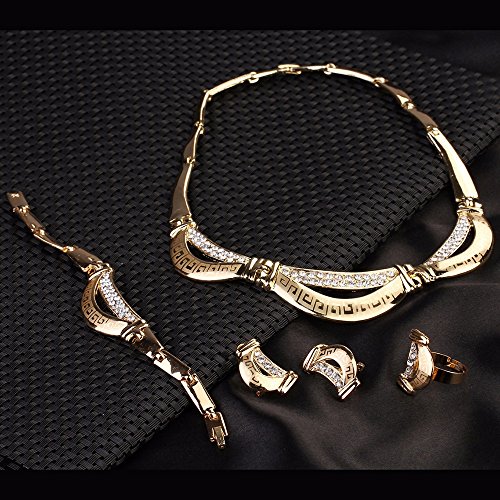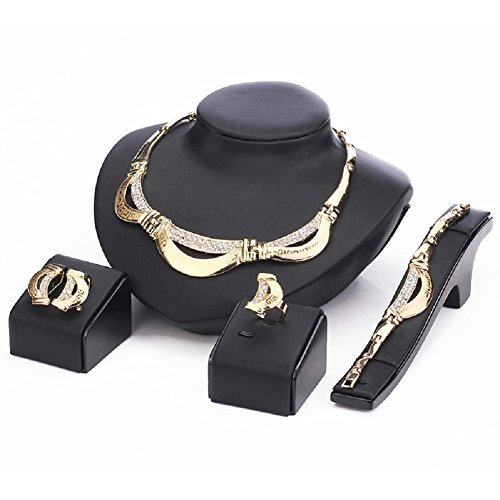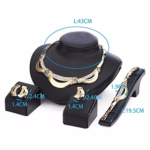 -. Feature : 2015 New Arrival Jewelry for Celebrition, Costume, Party, Wedding, Show / Jewelry Sets of necklace & bracelet & ring & one pair of earrings / Gold-plated is harmless and hypoallergenic for human / Smooth cutting technolgy for Crystal surface / Chain length: 16.93inch, bracelet length: 7.68 inch