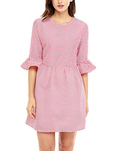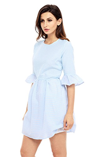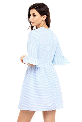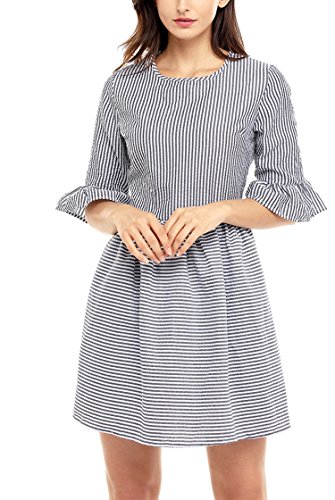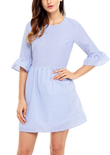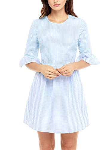This amazing structured skater dress is gorgeous, sweet, and sexy all at one time. The flounce sleeves and striped seersucker shell lend intrigue and glamour to this lovely dress. The half sleeves feature a girly flared design that is tremendously eye catching, adding interest and appeal to this look. The short and sweet upper thigh length hemline maintains the babydoll look.Feature