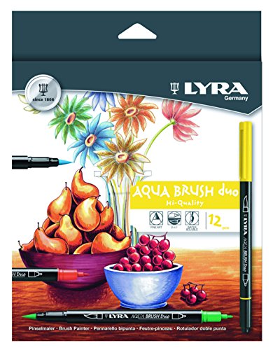 Lyra aqua brush duo is a pen with brush-on effect especially made for artists/designers and also suitable for hobby painters. The tips are extremely stable. There is a broad tip on one side which allows brush-like techniques. Fine lines and drawings are easy to do with the tip on the other side of the Aqua brush duo. This way pictures and layouts etc. can be done in a perfect way. The ink is water-based