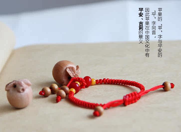 【苹果平安手链】桃木 红绳金刚结手链 宝宝 辟邪保平安化煞 脚链