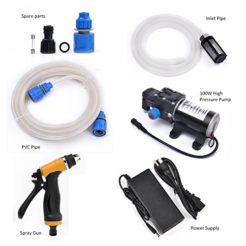 Dewel 100W 12V Portable Pressure Washer Car Wash Cleaning System Kit 200PSI Water Pump for Auto, Marine, Pet, Window,Travel, Gardening and Camping (100W with Power adapter)