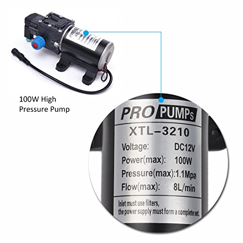 - Voltage: DC 12V; Power: 100W; Pressure: 1.4MPA; Flow: 8L/min.