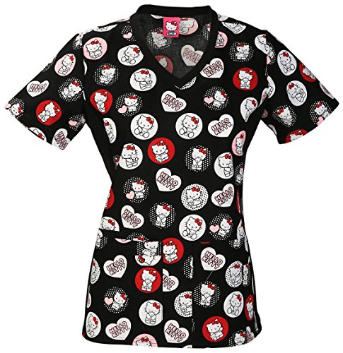 V-neck top features soft knit side panels, four pockets, including one scissor pocket on left and cell phone pocket with tab snap closure on right., 100% Cotton, Imported, Machine Wash, V-neck, Stretch side panels in contrast knit, Cell pocket with snap closure, Scissor pocket.