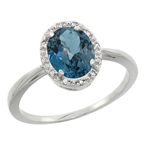 -. Title : Sterling Silver Natural London Blue Topaz Diamond Halo Ring Oval 8X6mm, 1/2 inch wide, sizes 5 10