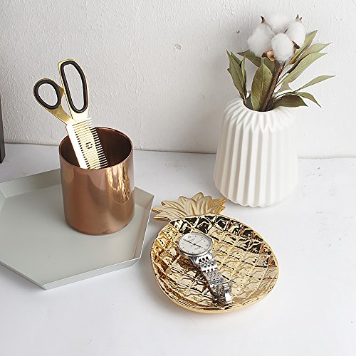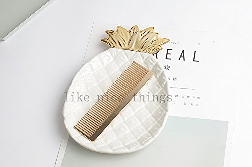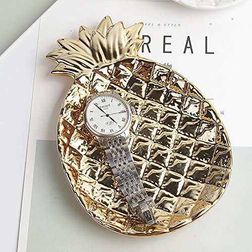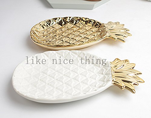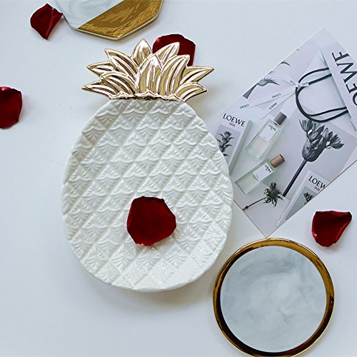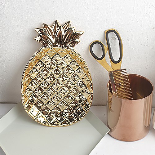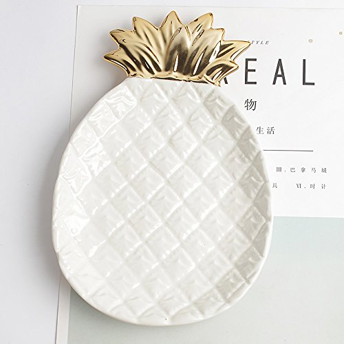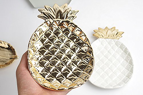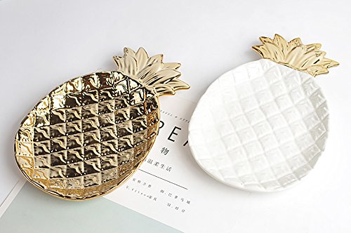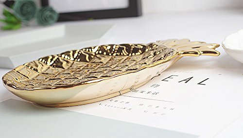 -. Feature : High-fired porcelain with electroplating design. / Perfect size and space saving ceramic dish can hold many of jewelty. / You can store it in the bedroom, salon, kitchen, bathroom, anywhere you think. It is ideal for keeping the keys, rings, bracelets, earrings and little things. DO NOT store in the dishwasher or microwave. / Product size: 6.7 by 5.1 by 1 inch and weighing about 11 ounces / Package includes: A pineapple Jewelry plate.