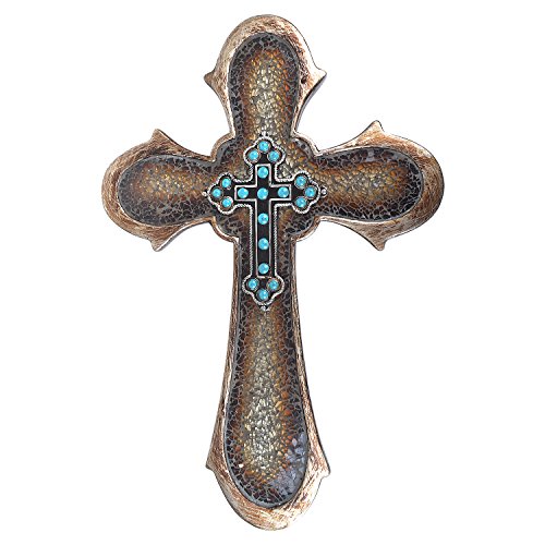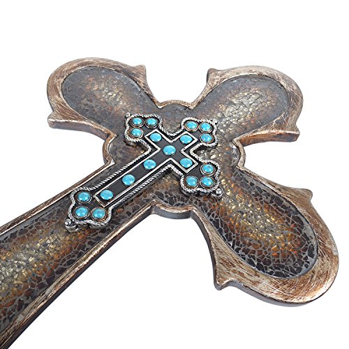 17" Western Style Wall Cross Faux Turquoise Beads Broken Glass Horseshoe
