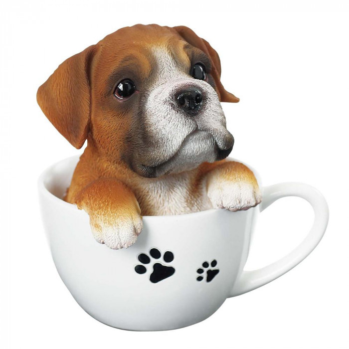 カップに入ったボクサー犬のオーナメント。お部屋の雰囲気を可愛らしくします。
