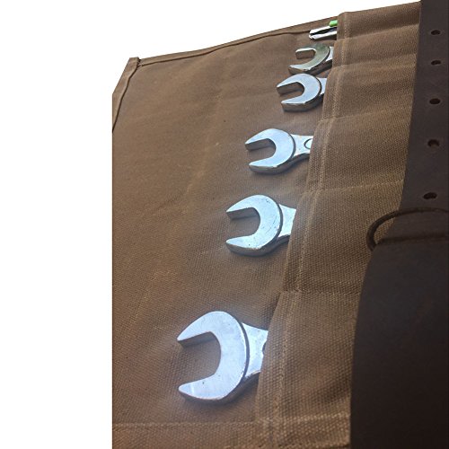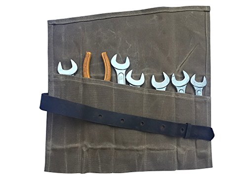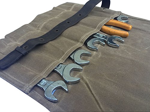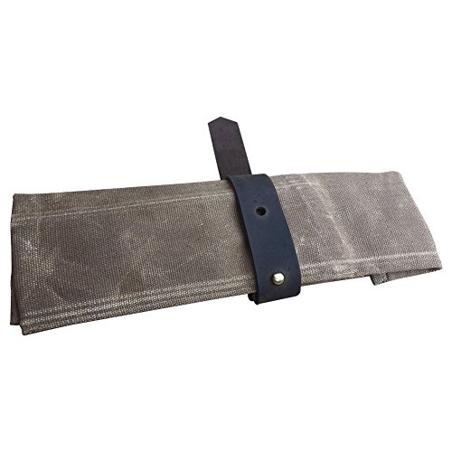 Waxed Canvas Tool Roll Bag Waterproof Wrench Roll Organizer Knife Roll Pouch with Leather Buckle Multi-Purpose Organizer Case Bag For Daily Catering Knife or Tools Handling HGJ03-D