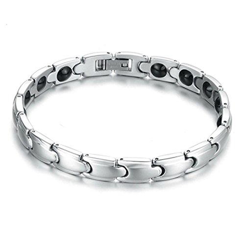 제품의타입??패션 티타늄(티탄) 자기 요법 팔찌 재질??티타늄(티탄)+자석 컬러 실버 길이: 22.5?cm (높이)가 포함되고 있고, 수컷,21?cm높이8.26?'')메스용폭: 1.0?cm ( 0.39?'')수컷,0.8?cm용0.31인치)가 포함되고 있고, 메스 컨디션 신품