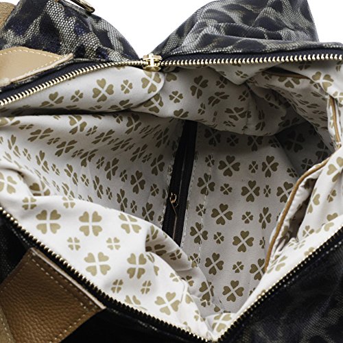 Closure:Zip. Nylon lining fabric.The bag have enough room,so you can take your enough stuff with you.