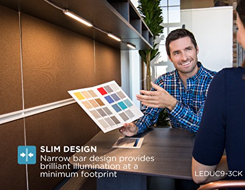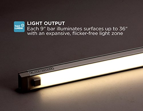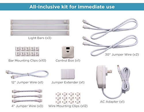 With its slim shape, the LED lighting simulates a bright, natural daylight with an expanded light zone, while the unit remains hidden for clean, contemporary style. Great for areas large or small, easily link up to 5 light bars (3 included) with each bar illuminating spaces up to 36 inches wide. Conveniently included in the kit are various sized jumper wires, which provide additional flexibility to cover longer distances or specialty configurations, such as jumping a stove. Depending on the task at hand, customize the light brightness by switching through the light’s 10 dimmer settings to find the perfect level of illumination while the flicker-free light softly fades out without any hot-spots. In addition to the power switch on one of the lights, for convenience and speed, you can also wave your hand below the motion sensor to turn the lights on or off. For energy efficiency, activate the timer and after three hours, the lights automatically shut off. With cost-efficient LEDs, use 85% less energy for brilliant illumination lasting 50,000 hours.