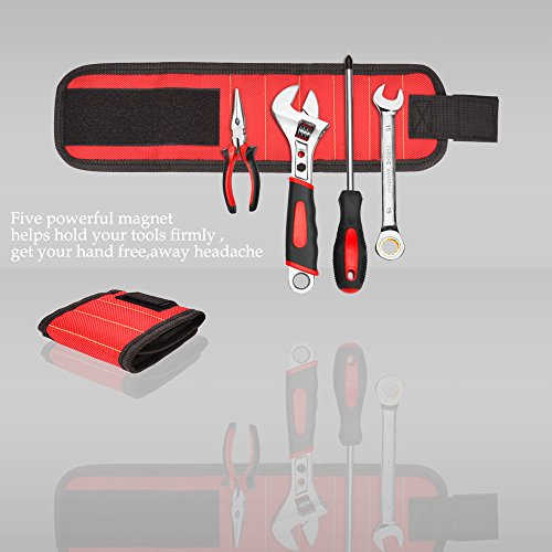 Magnetic Wristband Adjustable with 5 Powerful Magnets DIY Handyman Gift, Oziral Magnet Holding Tools for Screws, Nails, Bolts, Drill Bits and Small tools, nails and screws pouch