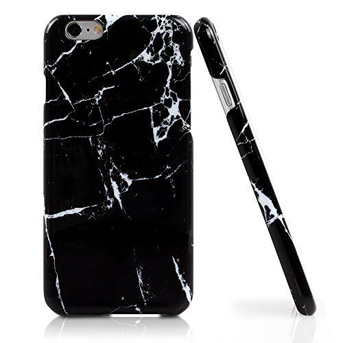 iPhone 6 Plus Case,iDOO [Marble Pattern]Glossy Slim Fit Snap On Protective Hard Shell Back Case for iPhone 6 Plus (5.5 inch Display) - Black