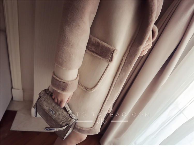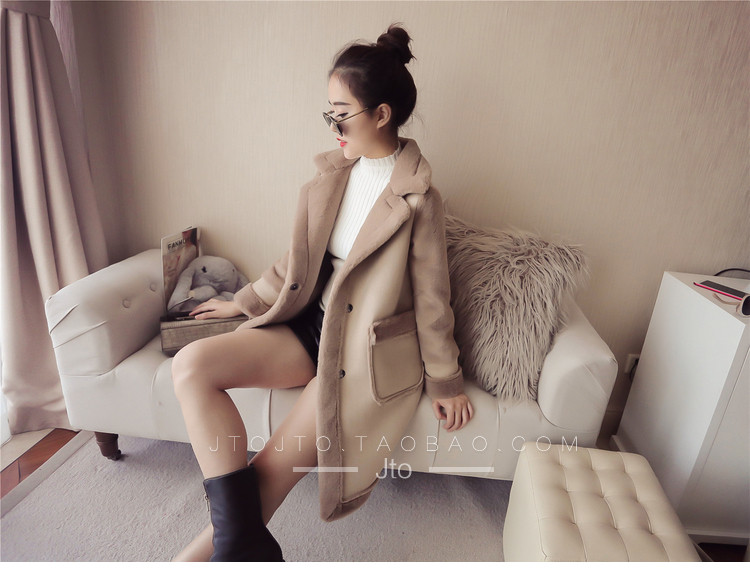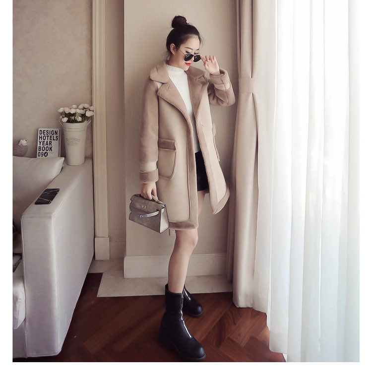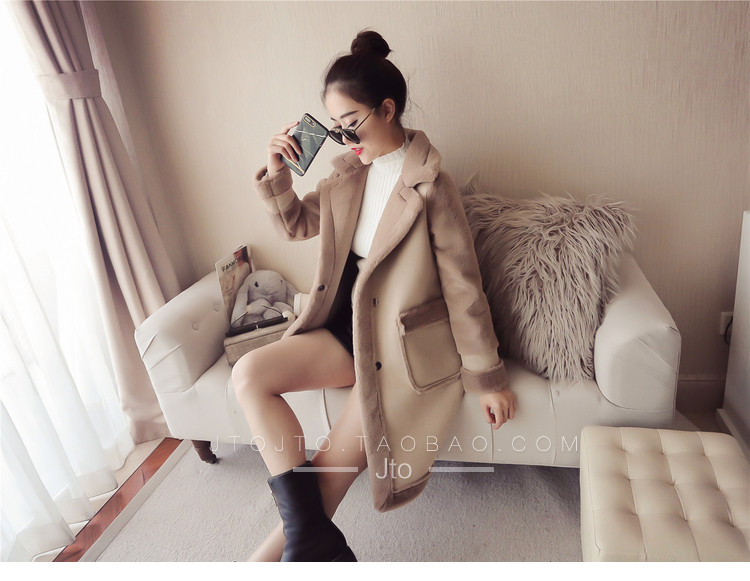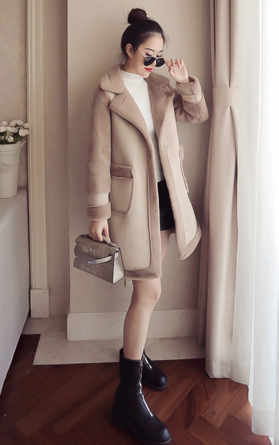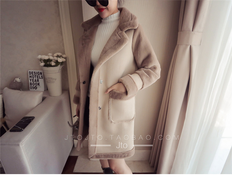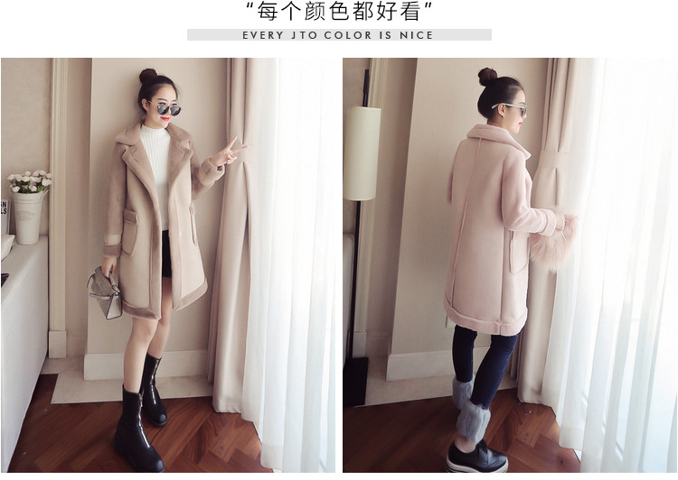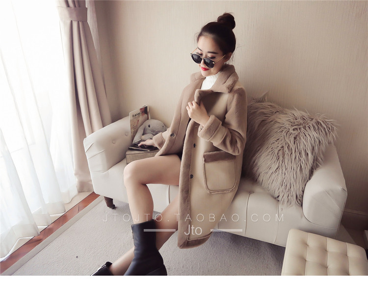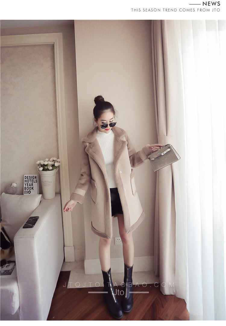 | Name. | 品名 - | 冬季新款韩版大翻领皮毛一体显瘦毛呢外套中长款麂皮绒大衣女V551 |