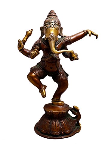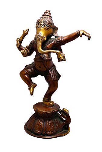 Amazing India Dancing God Ganesha Brass Idol Sculpture Statue 8.5 Inches X 3.5 Inches Gold