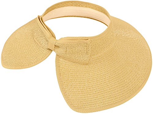 | Simplicity Womens Roll Up Straw Hat Beach Sun Visor, Wide Brim |