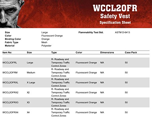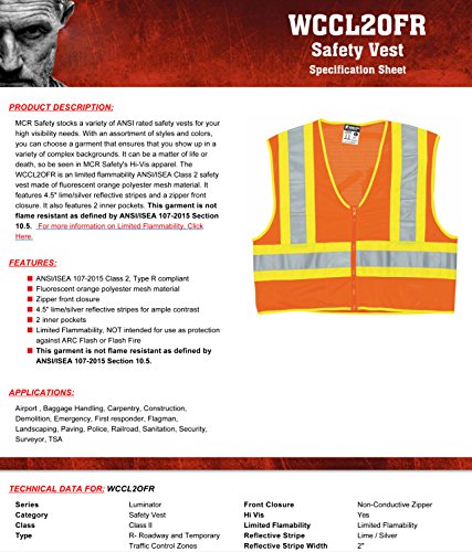 MCR Safety WCCL2OFRXL Class 2 Polyester Mesh Flame Resistant Safety Vest with 3M Scotchlite Yellow/Silver Reflective Stripe, Fluorescent Orange, X-Large