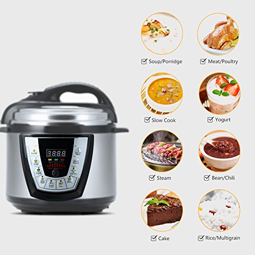 ★8-in-1 Multi-Functional Cooker: Pressure cooker, slow cooker, hot pot, rice cooker, saute, yogurt maker, steamer & warmer. One pot can meet most needs of family.