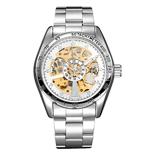 -. Title : GuTe出品 スケルトン ビンテージ アンティーク風 ステンレスバンド より高級よりいい品質 スタイリッシュ 上品 ホワイト 自動巻き メンズ腕時計
