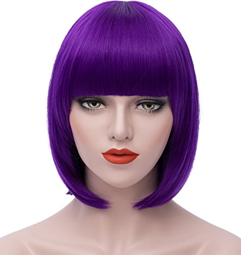 Women’s Wigs Bob Wig - Purple Cosplay Wigs 12" Short Straight Wig Bangs Wig Synthetic Wigs for Women S004PR